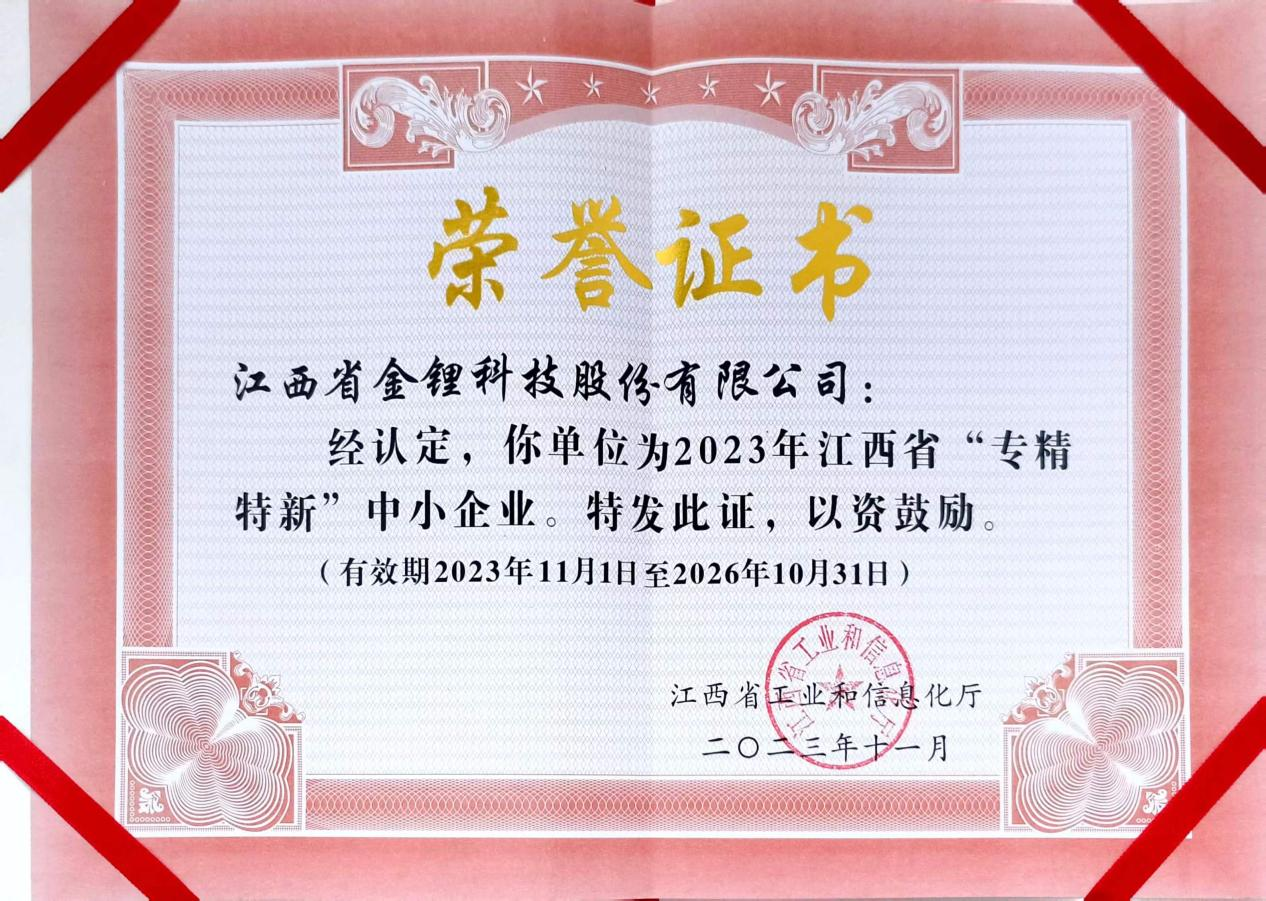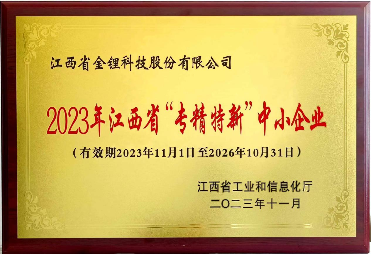 Z6.COM-尊龙集团金锂荣获江西省“专精特新”中小企业称号
